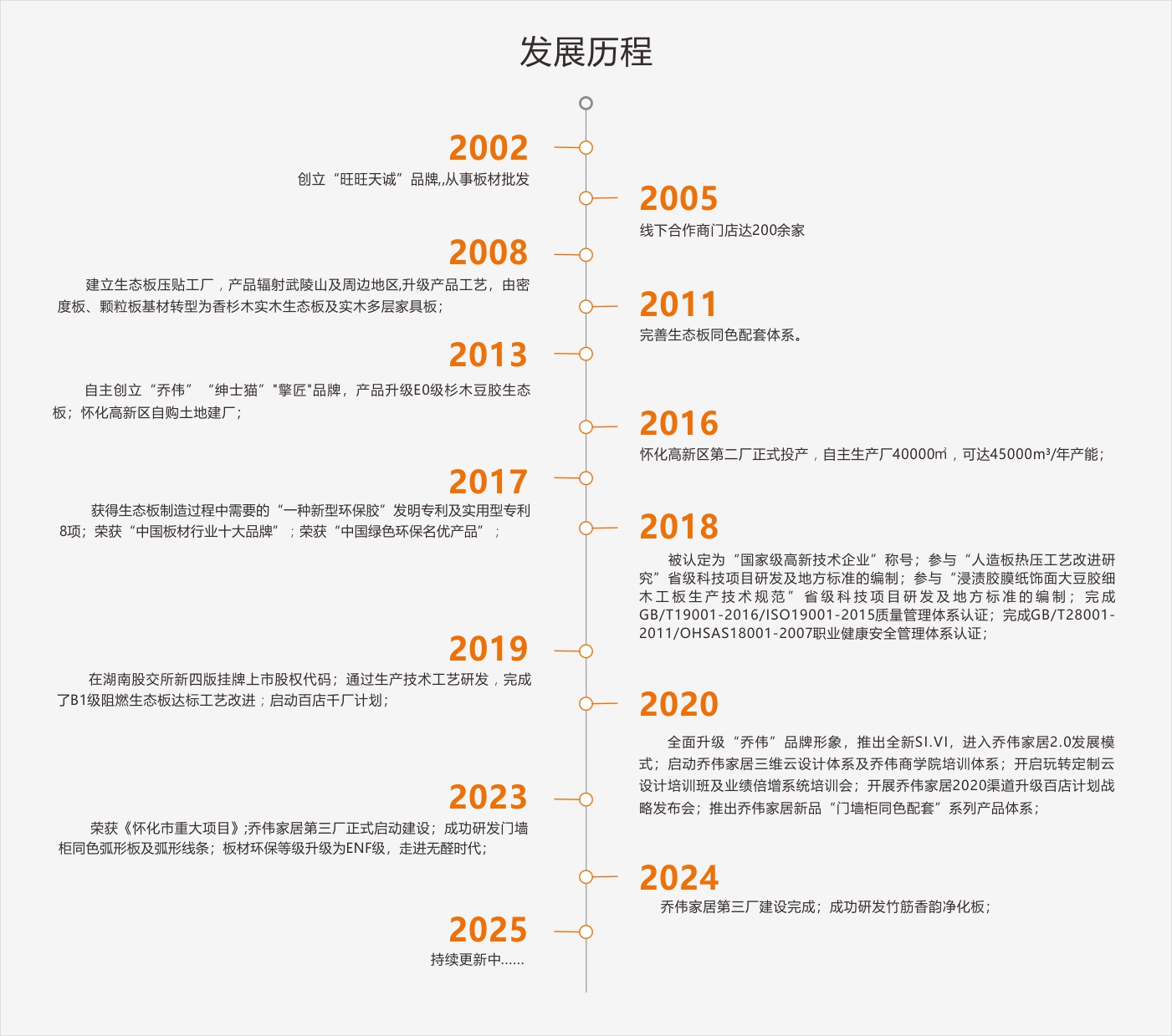 喬偉家居集團(tuán)創(chuàng)立于2002年,總部位于湖南省懷化高新區(qū)產(chǎn)業(yè)園,是一家專注于竹木生態(tài)板、竹木混合新材料及板式智能家居研發(fā)的國家高新技術(shù)企業(yè)。集團(tuán)現(xiàn)擁有5萬余平方米現(xiàn)代化產(chǎn)業(yè)園區(qū),注冊(cè)資金1113萬元,累計(jì)投資1.2億元。旗下設(shè)立3家全資子公司,有“喬偉、旺旺天誠、紳士貓、擎匠”四大自主品牌體系。現(xiàn)有員工320余人,其中專業(yè)研發(fā)人員18人,本科以上學(xué)歷管理人員58人,2020年12月30日在湖南省股交所掛牌,股權(quán)代碼600370HN。