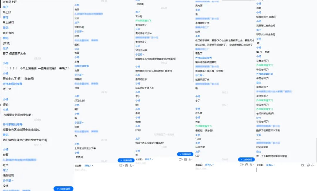 伴隨著活躍的彈幕涌起,陳蕓講師為大家進(jìn)行軟件戶型工具、智能設(shè)計(jì)、材質(zhì)替換、全屋家具定制、櫥柜定制等實(shí)操演講。